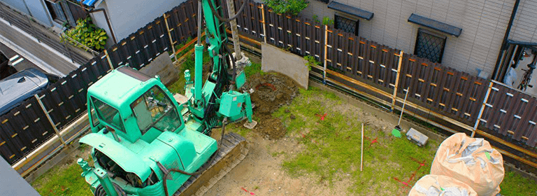 敷地の上に新しい家を建てる前に、土地の強度(地耐力)を調べます。地盤調査の結果、土地改良が必要な場合は地盤改良を行います。正式な測量により、建築可能面積や隣家との境界なども確認します。