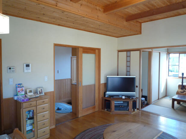 仁連木の家 木配りの家 木のフェンスと庭の素朴さが建物とマッチしており、「木配りの家」の代表作となっています。リビングには、珪藻土と桧板・パイン板がバランスよく配置されていて、経年美を実感します。 ●2005年11月竣工 2010年撮影時 施工事例一覧