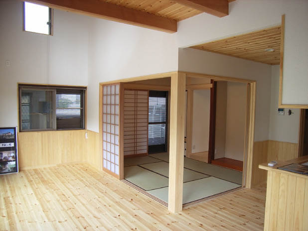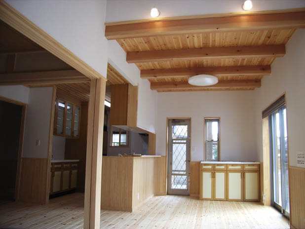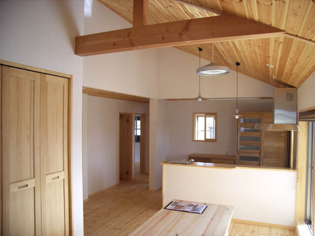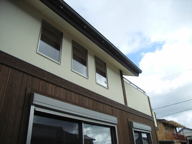 三本木の家 木配りの家 二世帯住宅でありながら、コミュニケーションのとれる空間として吹抜を配置。プライベートな部屋はそれぞれにしっかり確保。外観は、杉板張りと塗り壁により、ナチュラルモダンでまさに「時を経るごとに味わい深まる家」となっている。 施工事例一覧