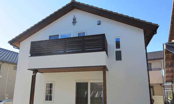 しっくい風コテ塗の白い壁と、ヨーロッパの古い街並みの屋根をイメージした屋根瓦。色ムラある瓦は屋根に表情をあたえ、温もりある住まいを演出します。