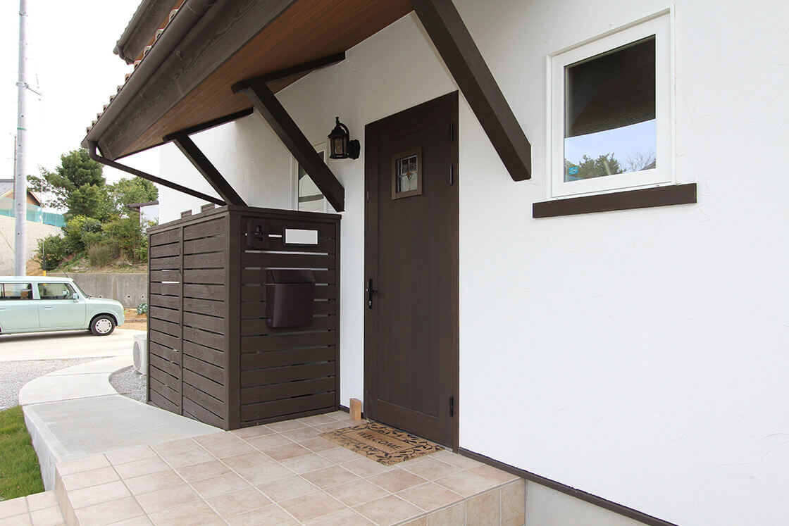 Foressoアンティークの家は、欧州の雰囲気を味わう白い壁のお家です。自然素材感が魅力のテラコッタ瓦、玄関タイルは自然な色むらで独特の味わいに。