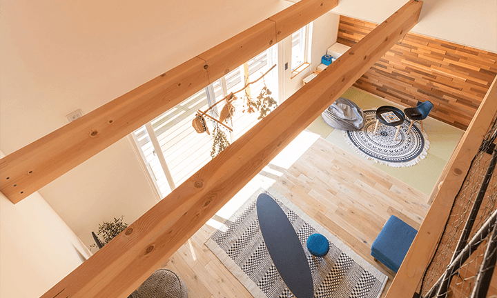 家の構造はできるだけシンプルにして、暮らしのコーディネートやカスタムを自由に楽しめる家。ナチュラルとは、自然のまま、ありのままのという意味です。産地産材を積極的に利用し、素材のよさを活かした家造り。薬剤なども可能な限り低減した長期優良住宅です。