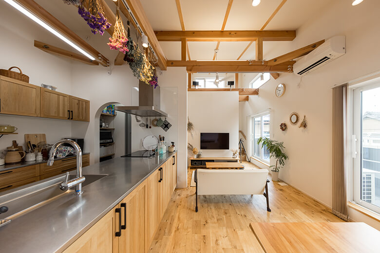 LDKプランなどで空間を細かく間仕切るのではなく、いつも家族の気配を感じることができる開放的な空間が生まれます。
