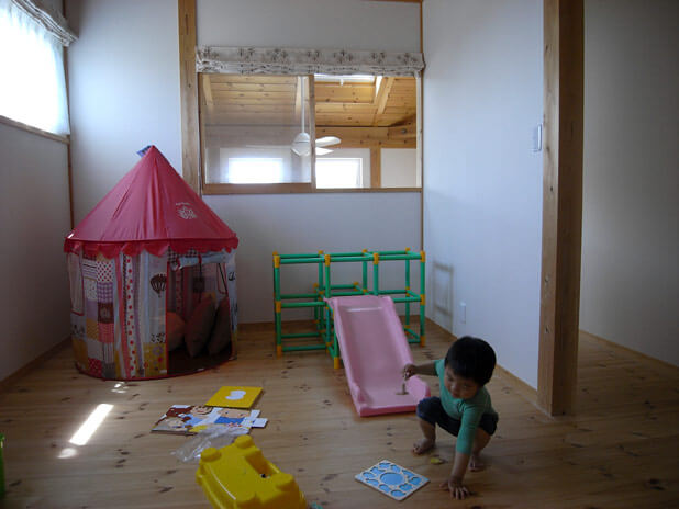 オウくんち 木浴 兄弟が元気いっぱいに走りまわり、遊ぶ・学ぶ住まいになりました。 床面積:116.77㎡(35.25坪) /柱・梁4寸、ペアガラス樹脂サッシ ☆その後の様子はこちらからご覧いただけます。 ■お客様の声 オウくんち 施工事例一覧