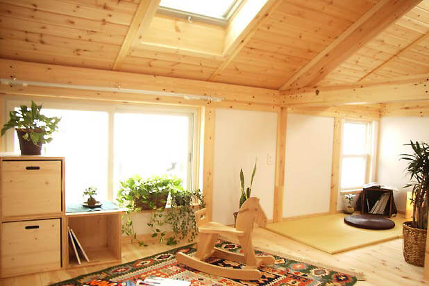 床面積:114.09㎡(34.5坪) /柱・梁4寸、ペアガラス樹脂サッシ